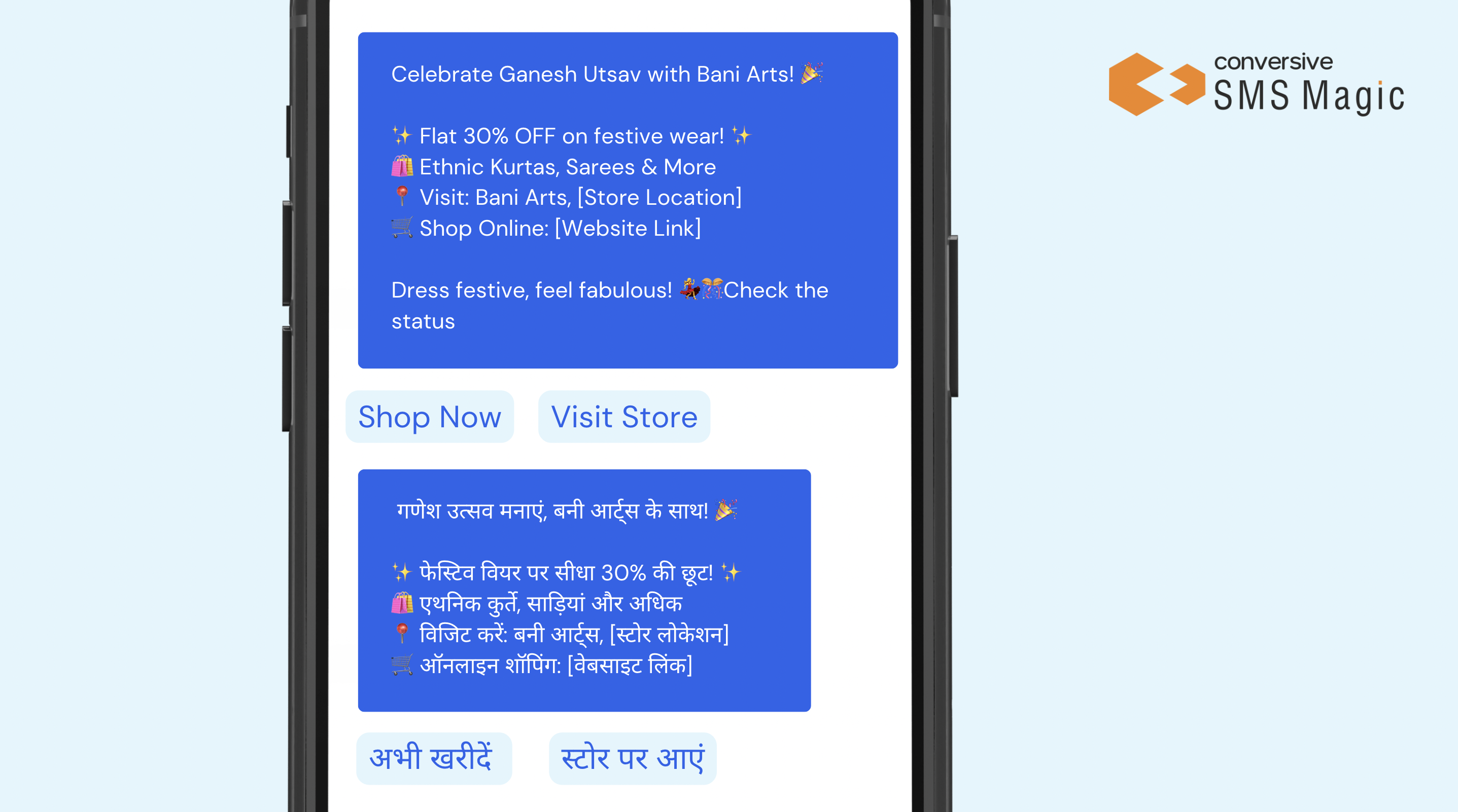 India has rich linguistic diversity, so for businesses to expand their reach and create impactful communication, they can create messages in a customer’s native language. RCS can help creating personalized, rich messages in preferred language, which will resonate with the local culture and lifestyle. Customers will then feel more comfortable navigating, making purchases and even seeking assistance in their own language. It’ll also help in increasing the relevancy and emotional connection. For example, a clothing brand promoting regional festivals or local trends can create a deeper and personal connection with customers, resulting in better engagement, niche market penetration and eventually foster loyalty & growth from customers.